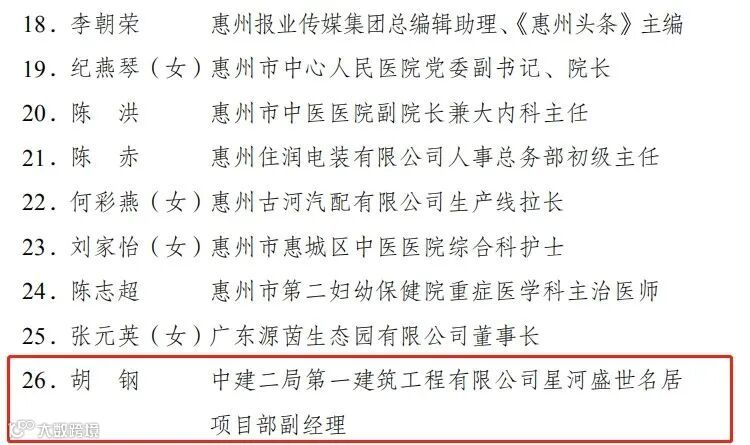 2020年度惠州市劳动模范