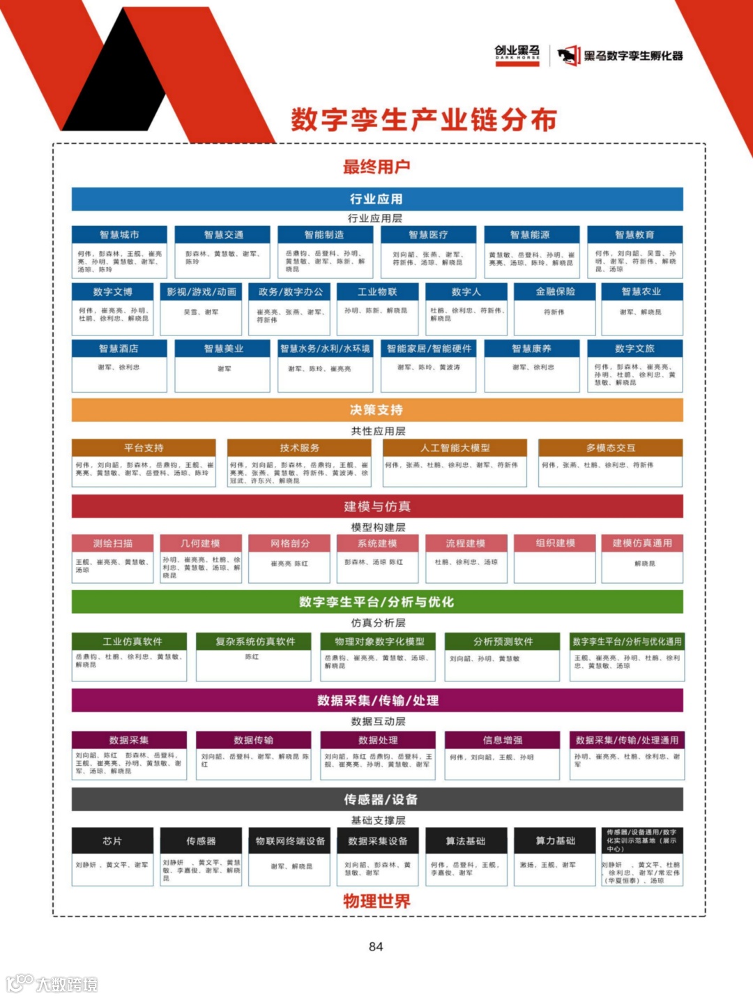 北京工业大学元宇宙云图智能研究院执行院长、北京星汉云图文化科技有限公司创始人、黑马数字孪生孵化营一期班长何伟正式发布了孵化营一期产业图谱。该图谱全面展示了班级同学在数字孪生、人工智能领域的涵盖信息支撑层、数据互动层、仿真分析层、模型构建层、共性应用层、行业应用层的全产业链条能力图谱,为参会企业提供了宝贵的行业洞察和合作契机。