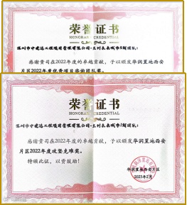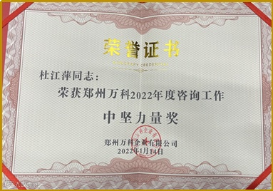 ▲2023年2月深圳中建达公司郑州团队杜江萍、关赛月、吕赛飞、李卫敏等人荣获万科地产、建业地产多项优秀顾问个人奖