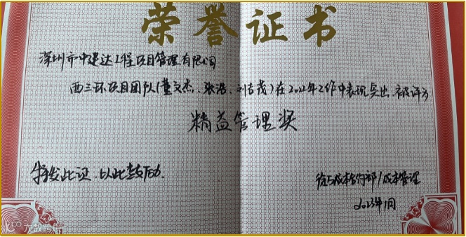 ▲2023年3月深圳中建达公司深圳团队荣获华润置地松润府项目“优秀团队奖”