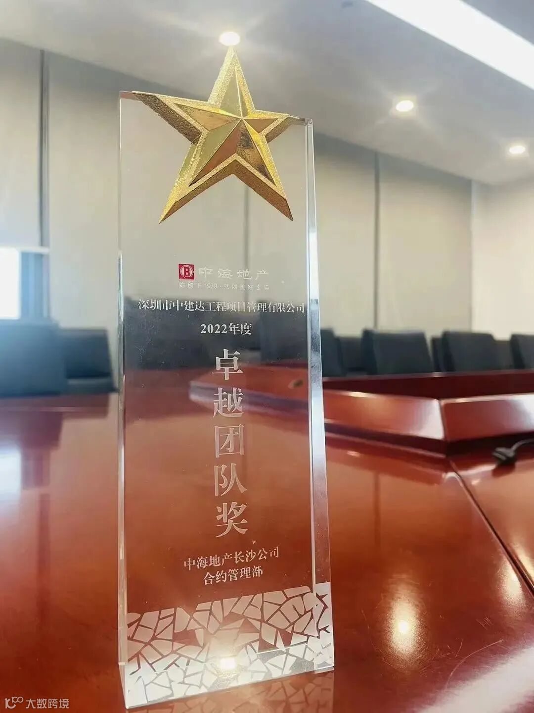 ▲2023年2月深圳中建达公司长沙团队荣获中海地产“2022年度卓越团队奖”