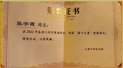 ▲项目顾问张宇霞、刘莹荣获太原万科“奋斗之星”荣誉称号