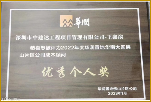 ▲2023年2月深圳中建达公司西安团队荣获华润置地“2022年度优秀项目咨询团队”、“2022年度降本专项奖”