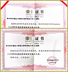 这些奖项是客户给予中建达全体同事作业成果的最高认可,它代表着中建达团队专业的技术实力,敬业协作的团队精神。公司自成立以来,坚持“客观公正、中立负责”的执业原则,“竭力为客户创造价值,提升客户核心竞争力”的服务理念,以客户为导向、质量为宗旨、为甲方项目进度保驾护航,深受各大客户单位的信任,是客户优秀的合作伙伴。