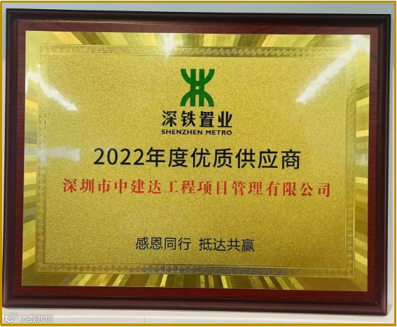▲2023年2月深圳中建达公司深圳团队荣获深铁置业“2022年度优质供应商”