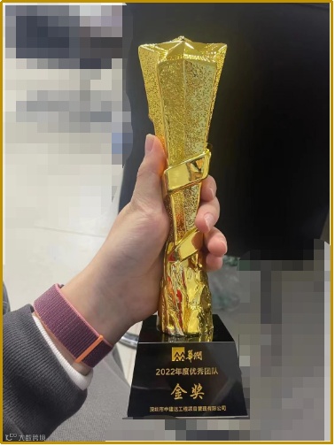 ▲2023年2月深圳中建达公司佛山团队荣获华润置地“2022年度优秀团队金奖”
