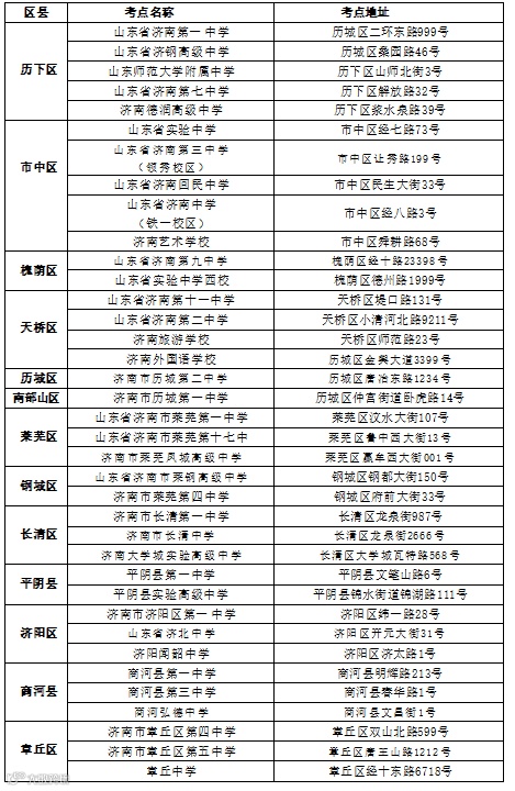2023年夏季高考济南市考点一览表
