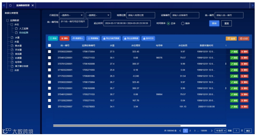 山东省作为国家级地下水超采综合治理的重点区域,近年来加强水资源管理,建设地下水监测体系,通过对地下水全要素数据采集,实现地下水资源的动态监测、评价、分析、预警,及时掌握水资源动态情况,为地下水资源开发和综合管理、可持续利用和保护提供了科学依据和技术支撑。