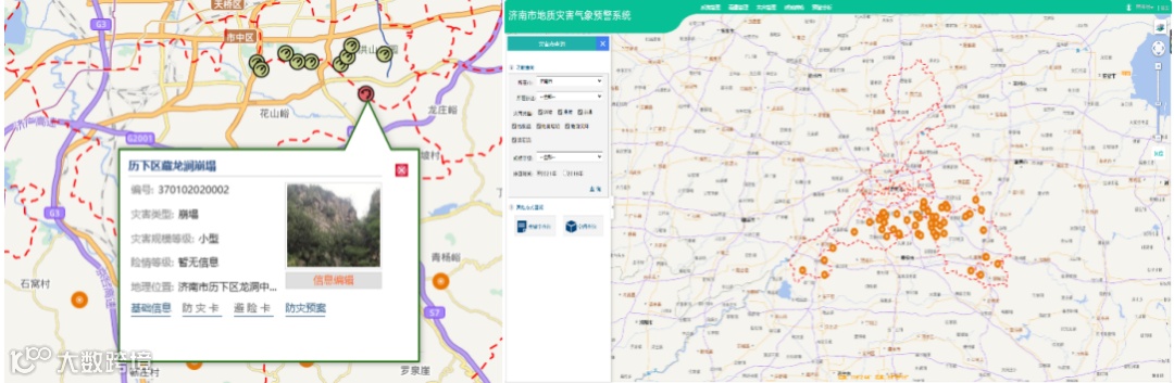 济南市地处鲁中山区北侧,山区与平原交接地带,地形地貌变化较大,地质构造复杂,受人类活动及自然因素的影响,区内具有地质环境条件复杂多样、地质灾害点分布广、活动频繁的特征。而汛期降雨量增加使得地质灾害发生的可能性更大,如何实现气象风险预警与地灾自动化监测的业务联动、预警预报覆盖区域的大而全,预报精度的精而准,成为进一步提升地质灾害综合风险预警能力的核心问题。