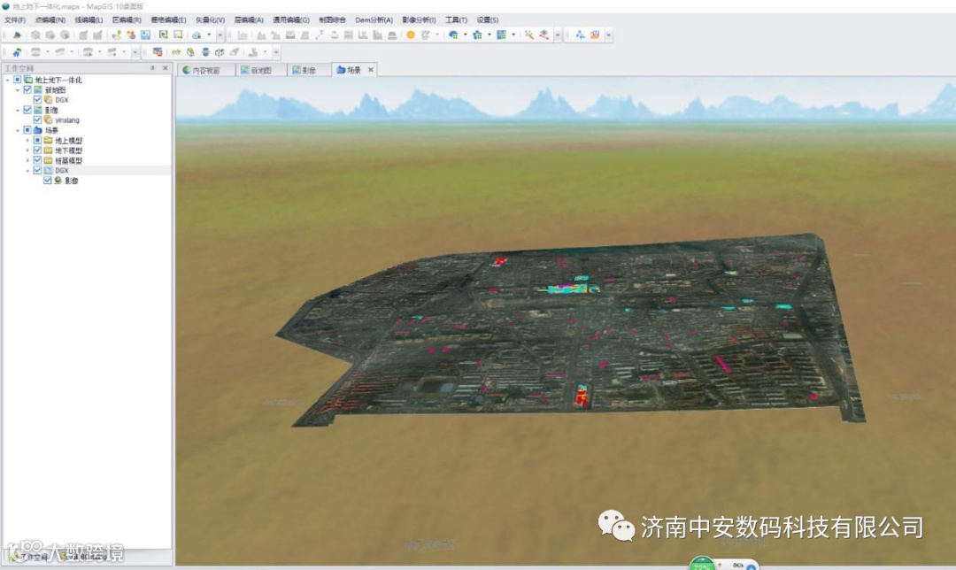 随着地理信息系统三维建模技术的发展,当下城市已被大数据所包围 。城市数字化已成为当代城市的发展标志。三维数据模型的应用为城市规划和发展提供更直观、更便捷的服务。地上地下一体化系统通过对区域的济南城市三维建模项目的设计和实现,探索了在新型数字城市项目中,数据生产、数据库管理、三维可视化以及立体分析等方面的应用。主要工作是对研究区域进行地面全要素的三维建模、数据整理和数据展示,打造景三维地理信息地图。用于城市规划对城市的未来形态进行预演,消失的城市形态也可以重新模拟出来,并根据规划成果随时进行修改,从而获得城市规划方案调整的科学依据,使城市规划更具前瞻性。用于城市管理三维建模技术可以完成城市灾害事件和突发事件的动态模拟,实现城市各类信息的可视化查询,为政府对城市的管理和服务提供决策。