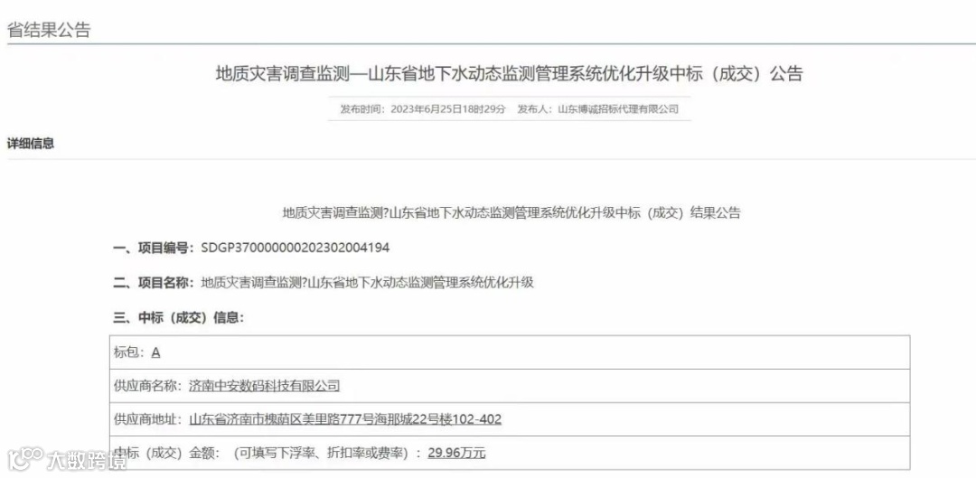 近日,经过与多家供应商激烈角逐,我司成功中标由山东省国土空间修复中心采购的《山东省地质灾害应急救援技术支撑体系建设(2023年)-地质灾害信息管理系统升级》和《地质灾害调查监测—山东省地下水动态监测管理系统优化升级》两个项目,充分彰显了我司的雄厚实力。