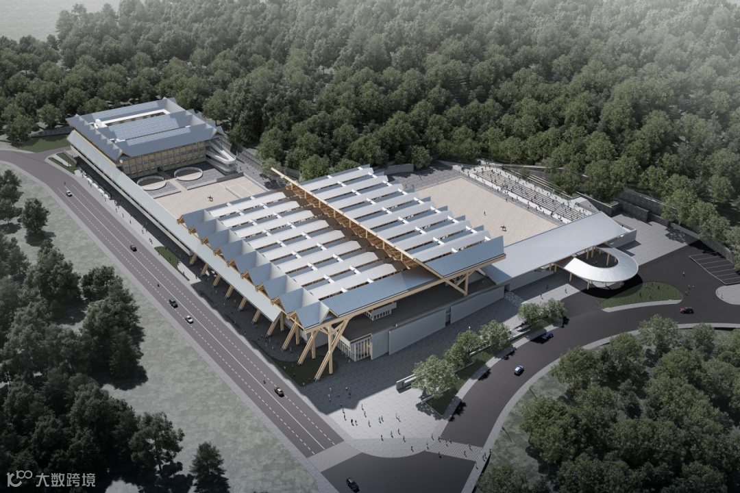 在建筑方案设计方面,项目以“木构新境、众檐共景”为设计概念,建筑屋面采用胶合木结构,建筑形象提取传统中国建筑“双坡屋顶”元素,又以非常规的体量凌空而出,形成蕴含结构逻辑的发散式密“檩”,做到传统与现代相融合,展现出独特的创新设计理念。