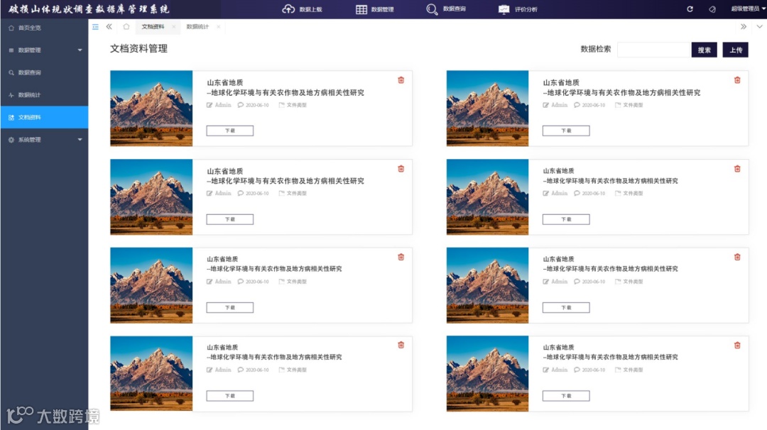 文档资料功能是对文档资料等信息进行综合管理,包括文档资料的上传、下载、预览、查询检索等功能。
