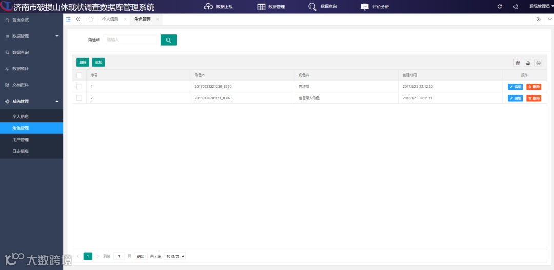 (2)角色管理是对不同用户角色进行不同管理权限设置,包括角色的添加、编辑、删除、批量删除、查询等功能。