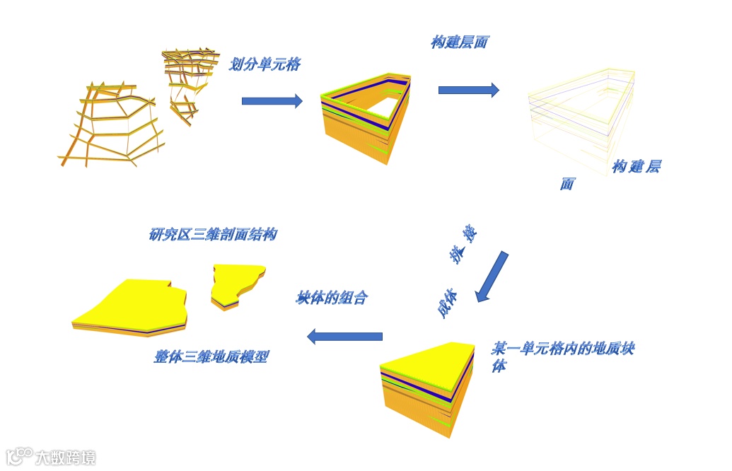 济南中安数码科技有限公司受山东省地质矿产勘察开发局八〇一水文地质工程地质大队(山东省地矿工程勘察院)委托对济南市新旧动能转先行区引爆区内大桥组团和崔寨组团进行三维地质模型构建,建模初期先对已有钻孔进行标准化,绘制剖面然后交互建模,建模中采用多人分工合作的方式,在准备好建模剖面后,导入三维,利用建模区域内多条交叉剖面将空间分割成多个单元格,工作人员建模的最小单元就是一个单元格,每个建模人员分别负责部分单元格进行建模,待单元格模型建完后通过系统的块体合并功能进行模型拼接,形成完整的模型。