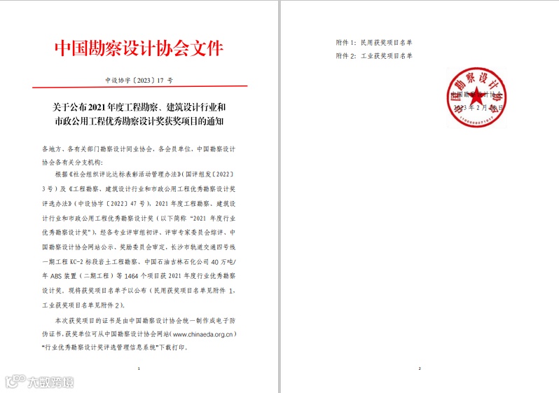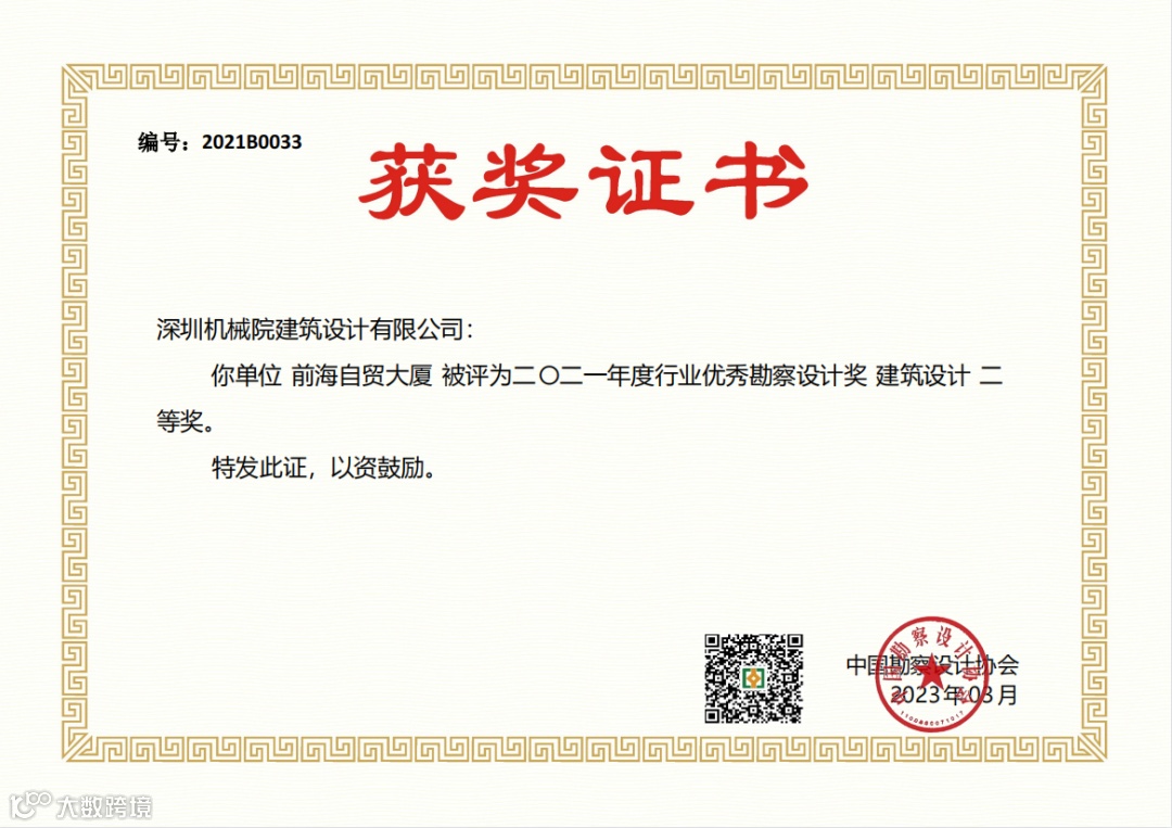 近日,中国勘察设计协会印发了《关于公布2021年度工程勘察、建筑设计行业和市政公用工程优秀勘察设计奖获奖项目的通知》(中设协字〔2023〕17号),公布了2021年度行业优秀勘察设计奖获奖项目名单。深圳机械院设计项目前海自贸大厦被评为2021年度行业优秀勘察设计奖建筑设计二等奖。