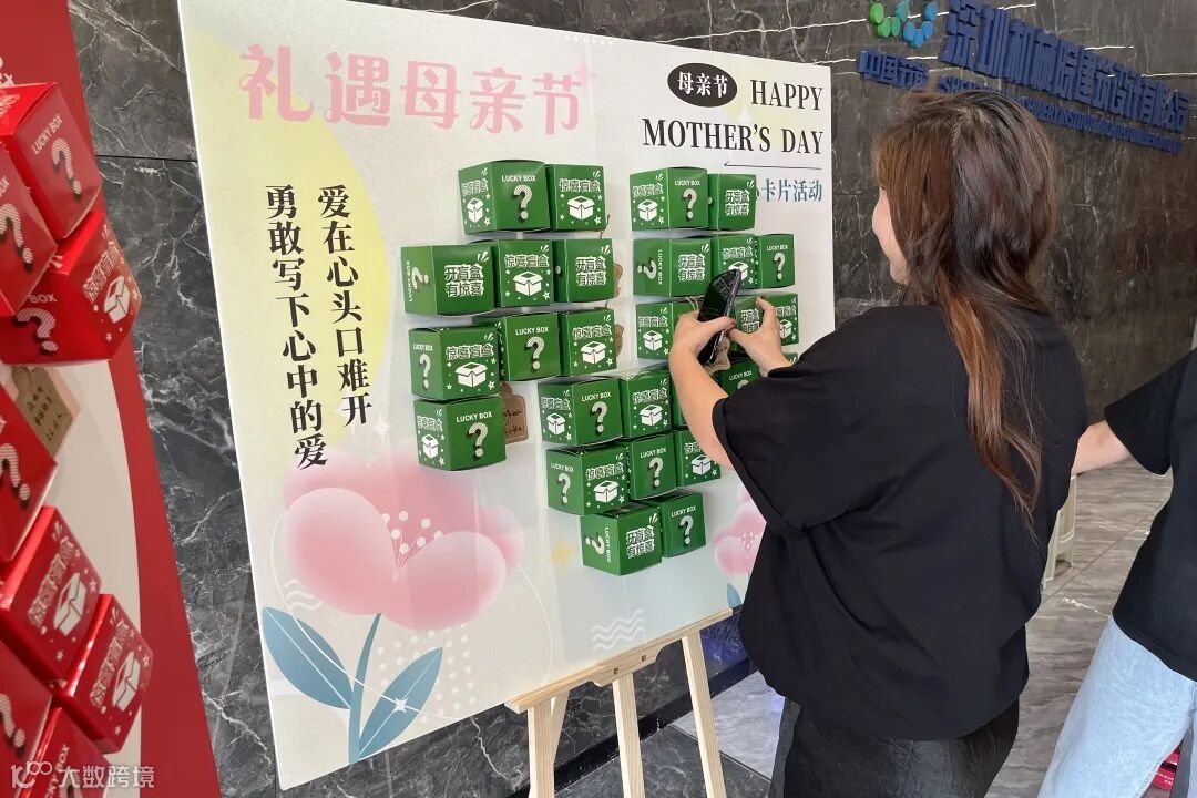 写下祝福语后,妈妈们轻轻取下对应的盲盒,将爱心卡片粘贴在取下的位置。随着盲盒的打开,兑换成一件件精美的母亲节礼品呈现在妈妈们眼前。公司为大家准备的礼品,每一件都承载着对妈妈们的深深祝福。