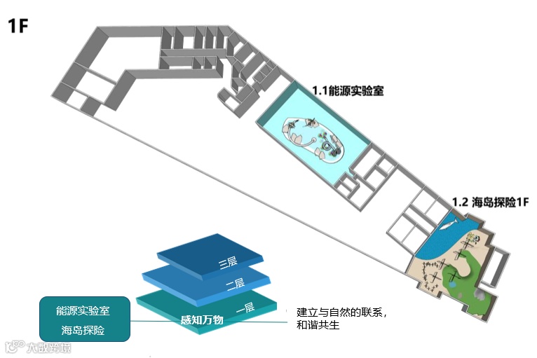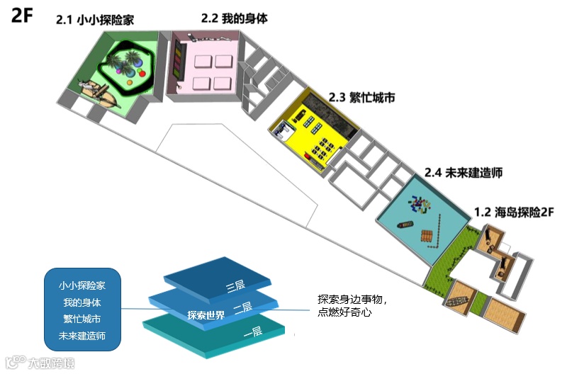 中国儿童博物馆教育研究中心根据问卷调研及一对一线上访谈,归纳出“感知万物——探索世界——创造未来”的儿童成长认知线索,以此规划儿童博物馆展区内容,为幼儿园提供更丰富的环境和教学资源。