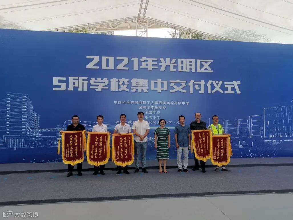 8月28日上午,深圳市光明区2021年5所学校集中交付仪式在中国科学院深圳理工大学附属实验高级中学隆重举行。其中,由深圳机械院承担设计的东周学校项目正式交付使用,东周学校项目设计团队受邀参加此次集中交付仪式并领取了荣誉锦旗。