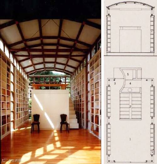 这是他的第一个永久性纸建筑-诗人的书屋(Library of a Poet)