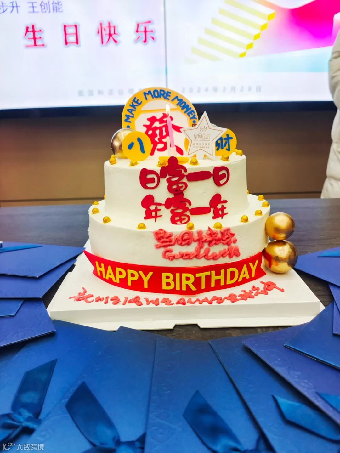 公司为寿星们准备了生日蛋糕和购物卡福利,生日会欢声笑语中拉开了序幕,大家齐唱生日快乐歌,现场氛围温馨、愉悦。寿星们一起吹蜡烛、分享蛋糕。每个人脸上都充盈着喜悦和幸福。