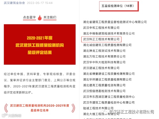 导读:热烈祝贺我司荣获“2020-2021年度武汉建筑工程质量检测机构五星级单位”荣誉称号。获此荣誉不仅是对我司技