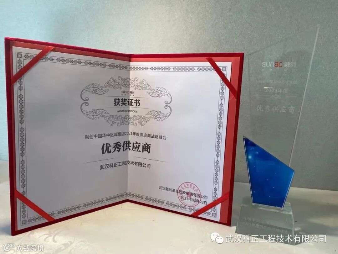 导读:武汉科正工程技术有限公司获得融创中国华中区域集团2021年度“优秀供应商奖”。
