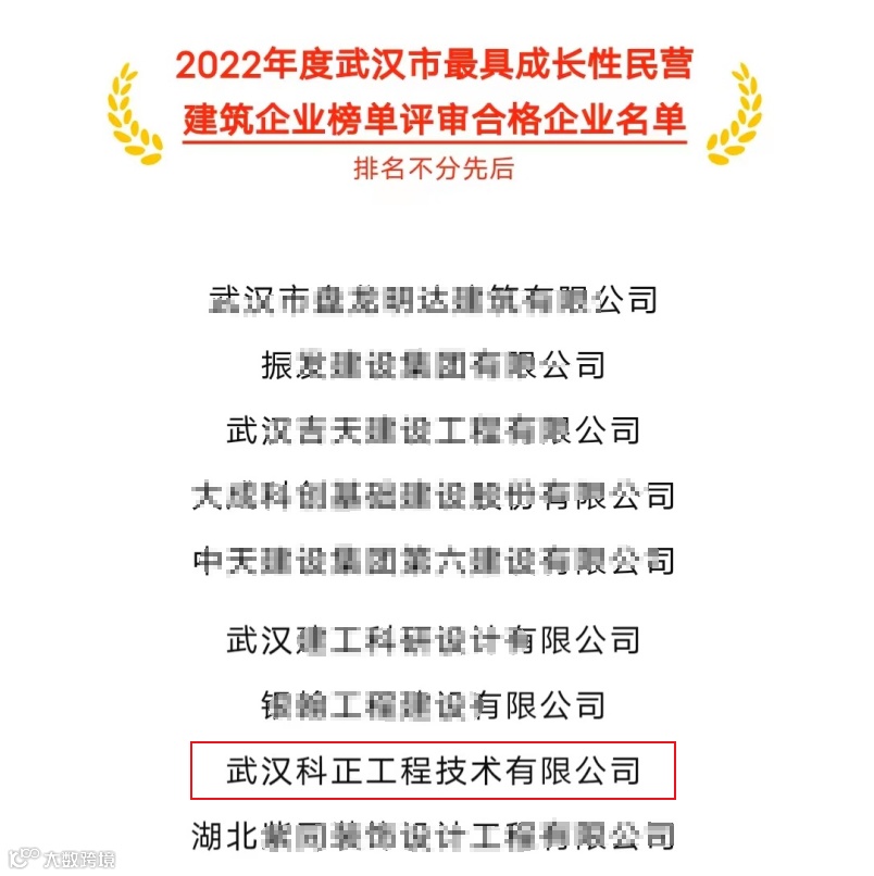 热烈祝贺我司荣获武汉市建筑业协会“2022年度武汉市最具成长性民营建筑业企业”荣誉。
