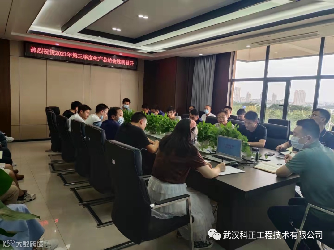 9月27日下午,武汉科正工程技术有限公司第三季度生产总结大会在我司成功召开,会议由我司总经理主持,公司高管及各部门负责人、分公司负责人等30余人参加会议。