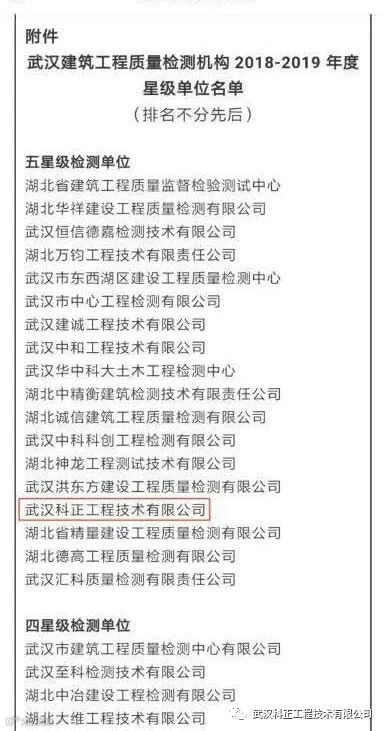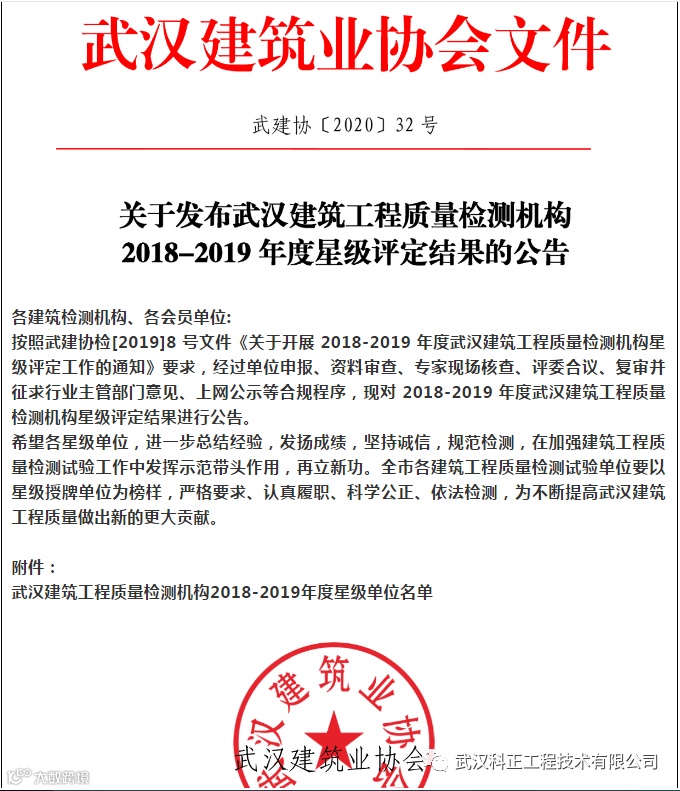 正文链接:关于发布武汉建筑工程质量检测机构2018-2019年度星级评定结果的公告