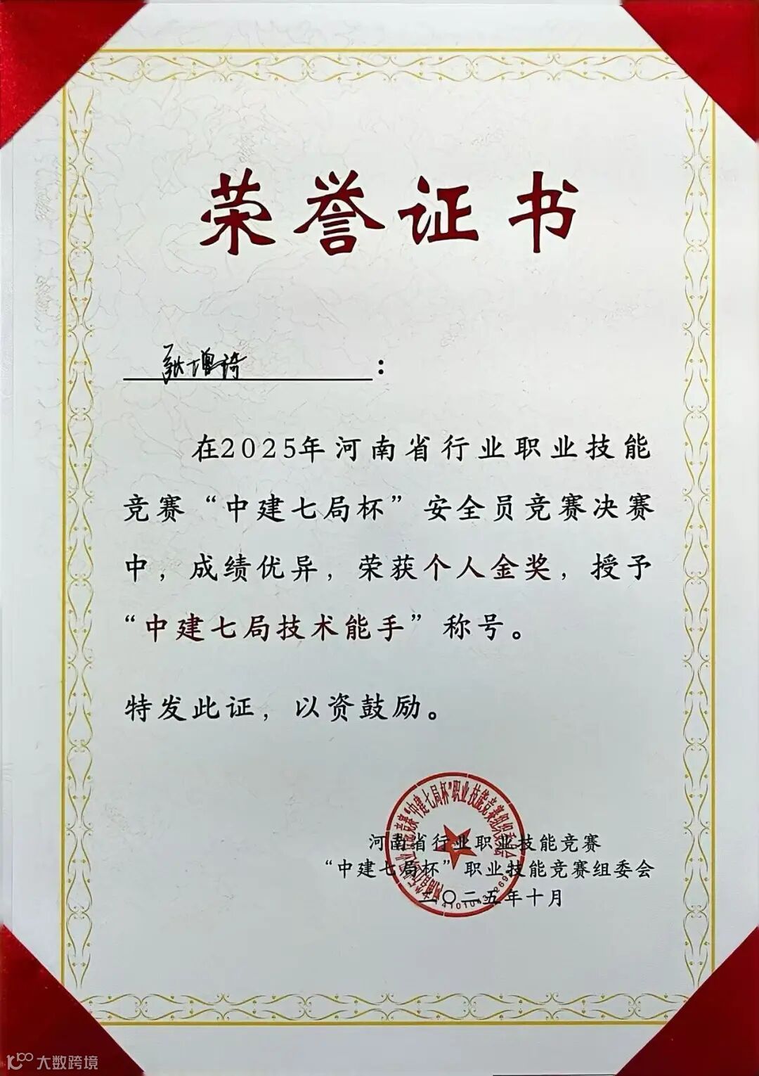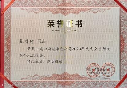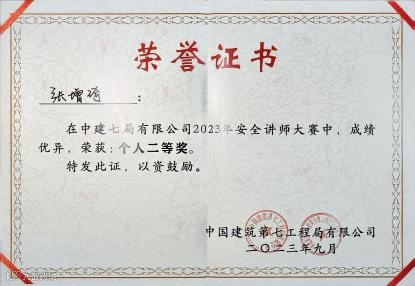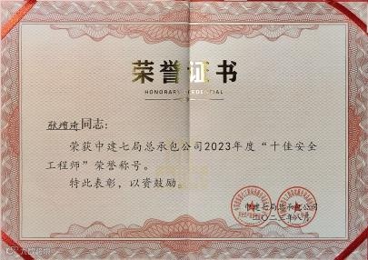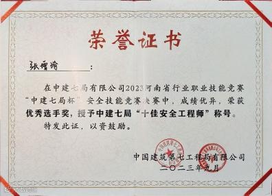 十年安全路,初心从未改。张增琦先后斩获河南省“安康杯”建筑行业项目安全总监技能竞赛决赛一等奖、河南省行业职业技能竞赛金奖、局安全讲师大赛二等奖等多项荣誉。这些沉甸甸的奖项,是对他十年来承志尚进、奋斗笃行的充分肯定。