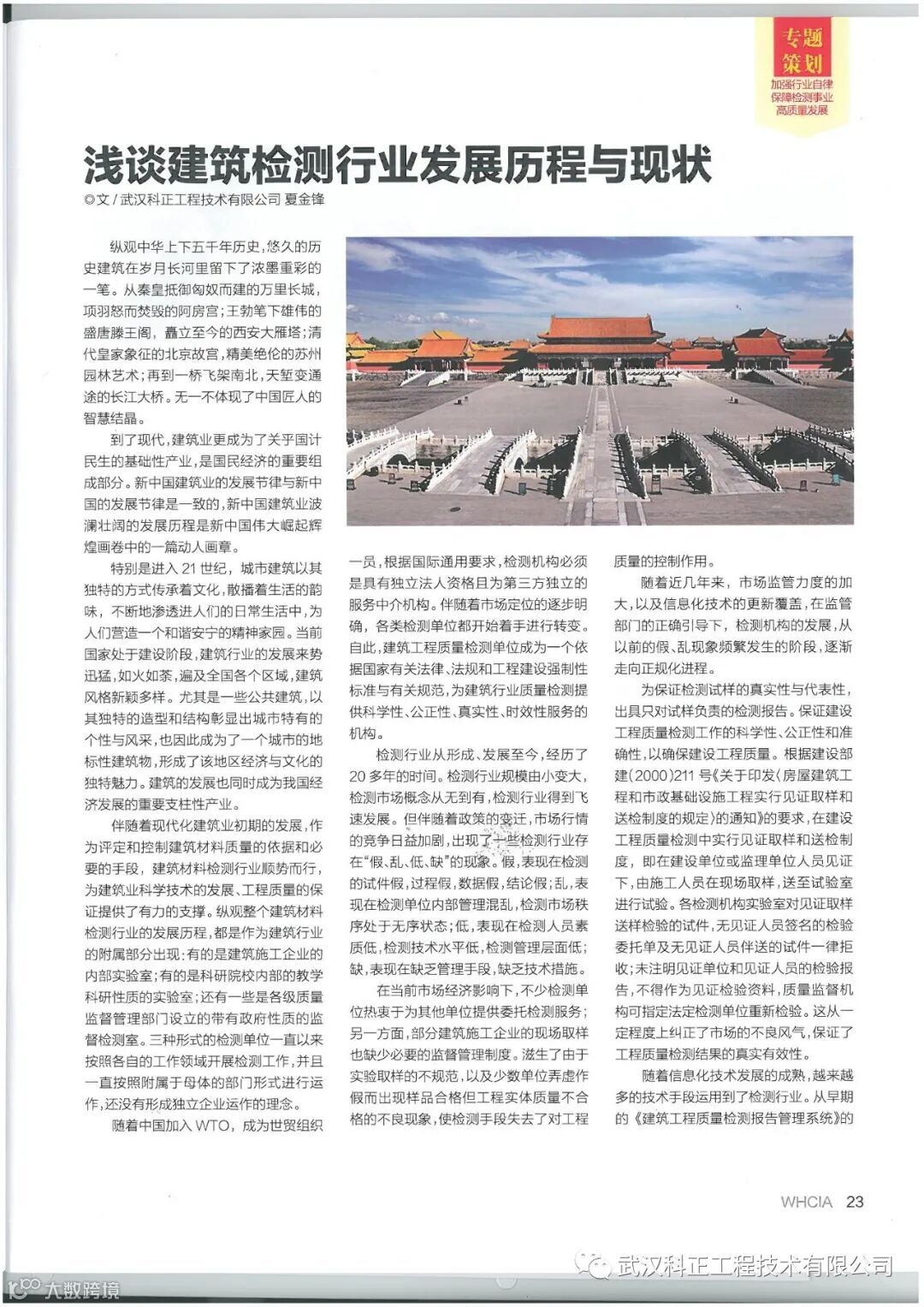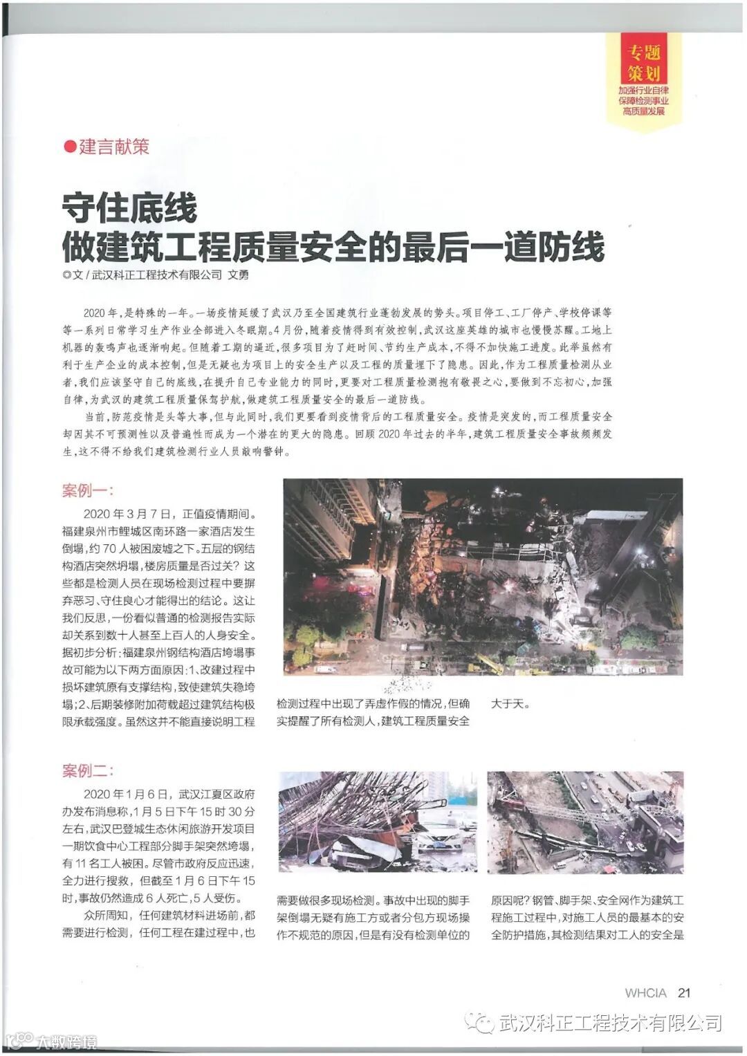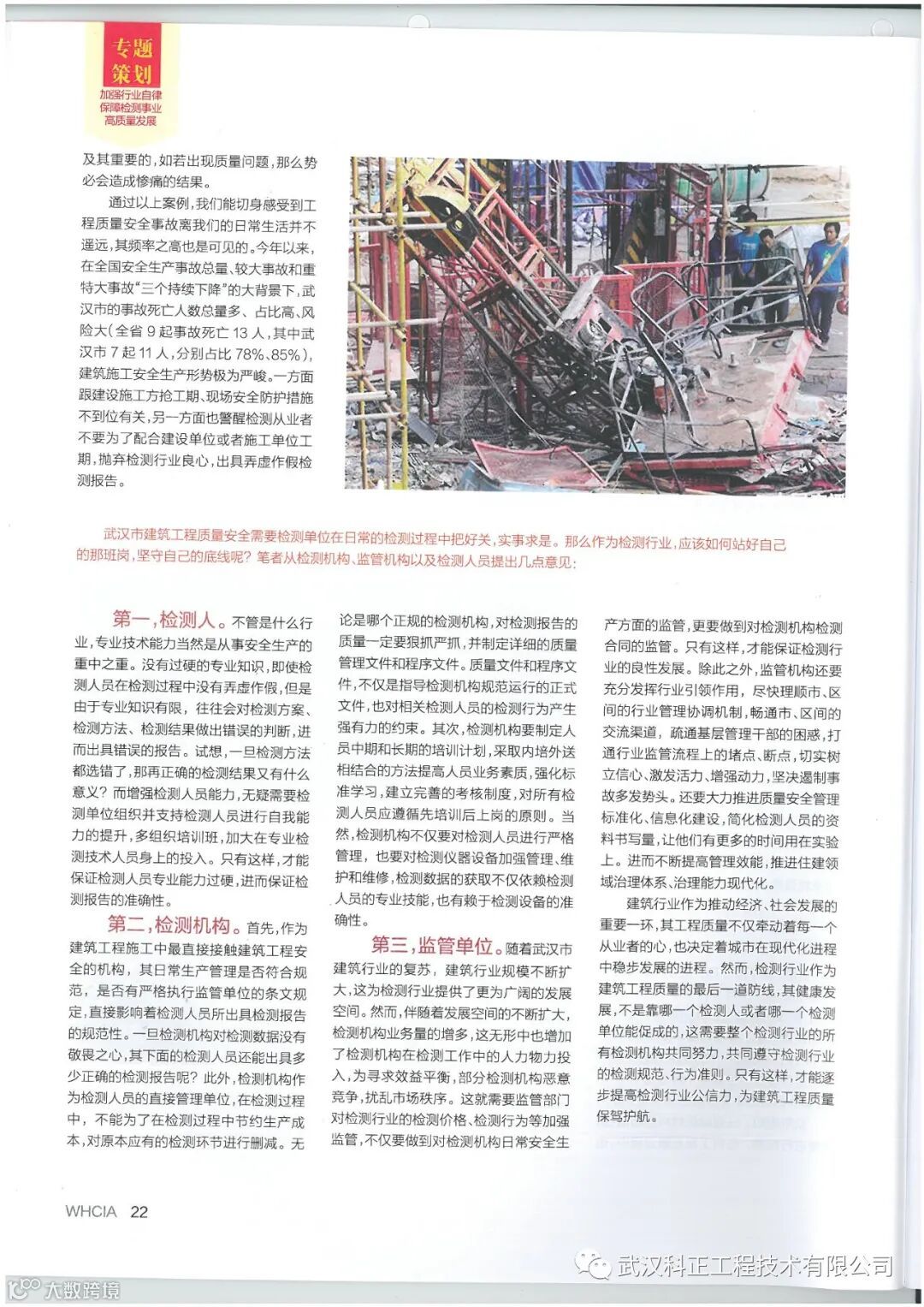 导读:祝贺我司夏金锋、文勇两位同志的文章登上《武汉建筑业》期刊