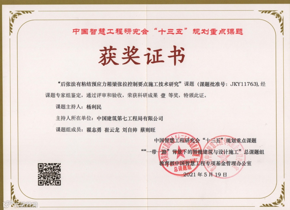 一分耕耘一分收获。当他参与的“后张法有粘结预应力箱梁张拉控制要点施工技术研究”课题,获中国智慧工程研究会“十三五”规划重点课题国家级科研课题一等奖时,他摸着泛黄的笔记本笑了, 第一页还留着初入职场时写的“不懂就问,不会就学”。