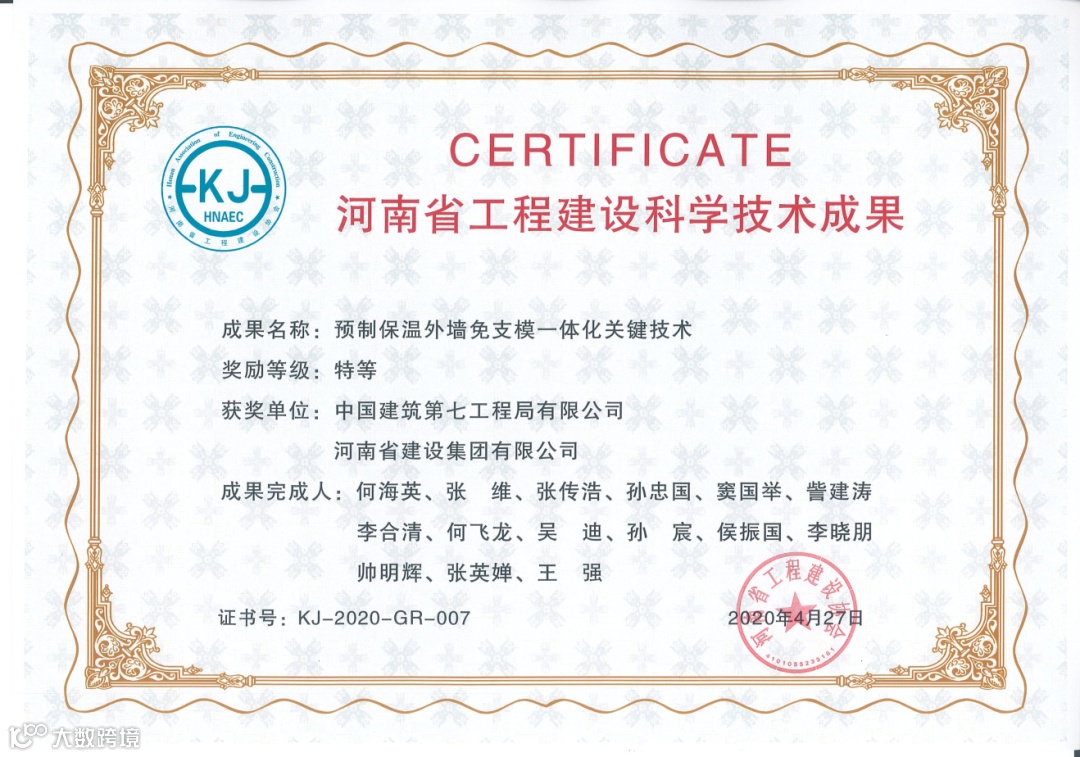 截至目前,项目先后荣获中施协科技奖2项、河南省住建厅科技奖1项、河南省工程建设科技成果1项。此外,项目还承办了全国砌筑大赛、工程局质量月启动会及省级以上观摩活动10余次。