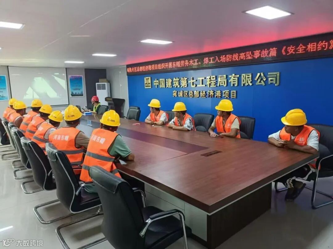 10月23日,南阳市高铁片区总部经济港项目举行安全教育专题会,组织特殊工种观看《安全相约》警示教育片。