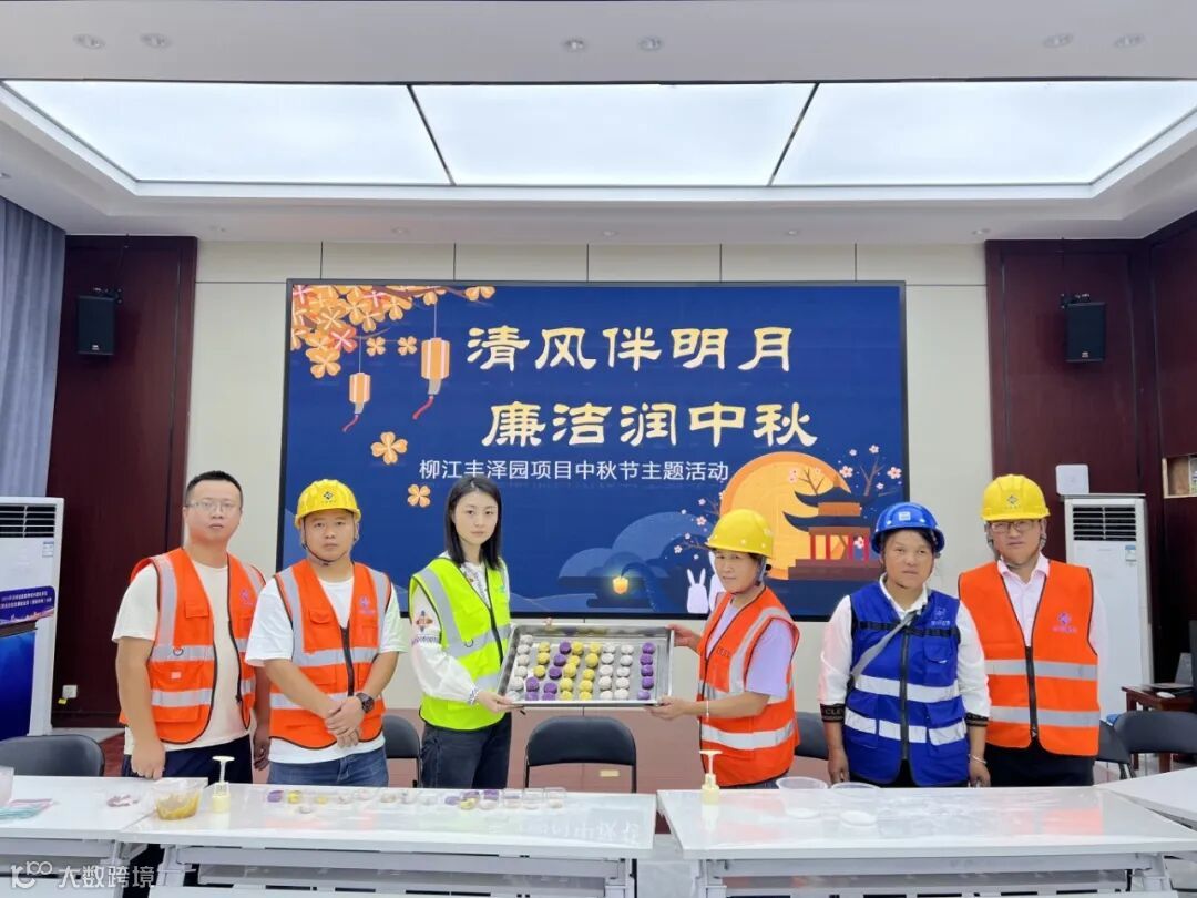 我是柳江丰泽园项目的钢筋工江少忠(图中左二)。这次来参加项目组织的中秋月饼DIY活动,心里暖洋洋的。揉面、包馅、压模,每一道工序都充满了乐趣与成就感。亲手制作的每一块月饼都承载着对家人的思念和祝福,也让这个中秋变得更加有意义,让我们这些远离家乡的劳务工友感受到了项目大家庭的温馨和节日的氛围。