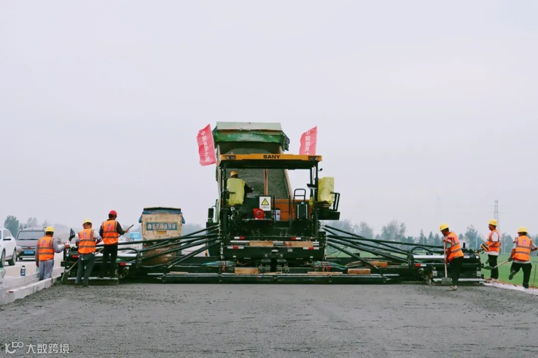 项目部紧盯节点目标,倒排施工计划,针对高温等特殊天气,加强施工组织和资源调配,动态调整工作时间,实现“早施工,晚开工”,保证工程进度按时推进。同时,采用全幅水稳摊铺机进行水稳基层摊铺作业,一次性完成路面基层摊铺,不仅大幅提升了施工效率,还为下阶段沥青铺设等重要节点的实现争取了宝贵时间。