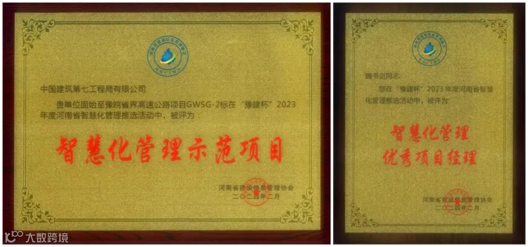 分公司副总经理、固皖高速项目党支部书记、项目经理魏书剑获评河南省“智慧化管理优秀项目经理”称号,固皖高速项目获省级“智慧化管理示范项目”称号。