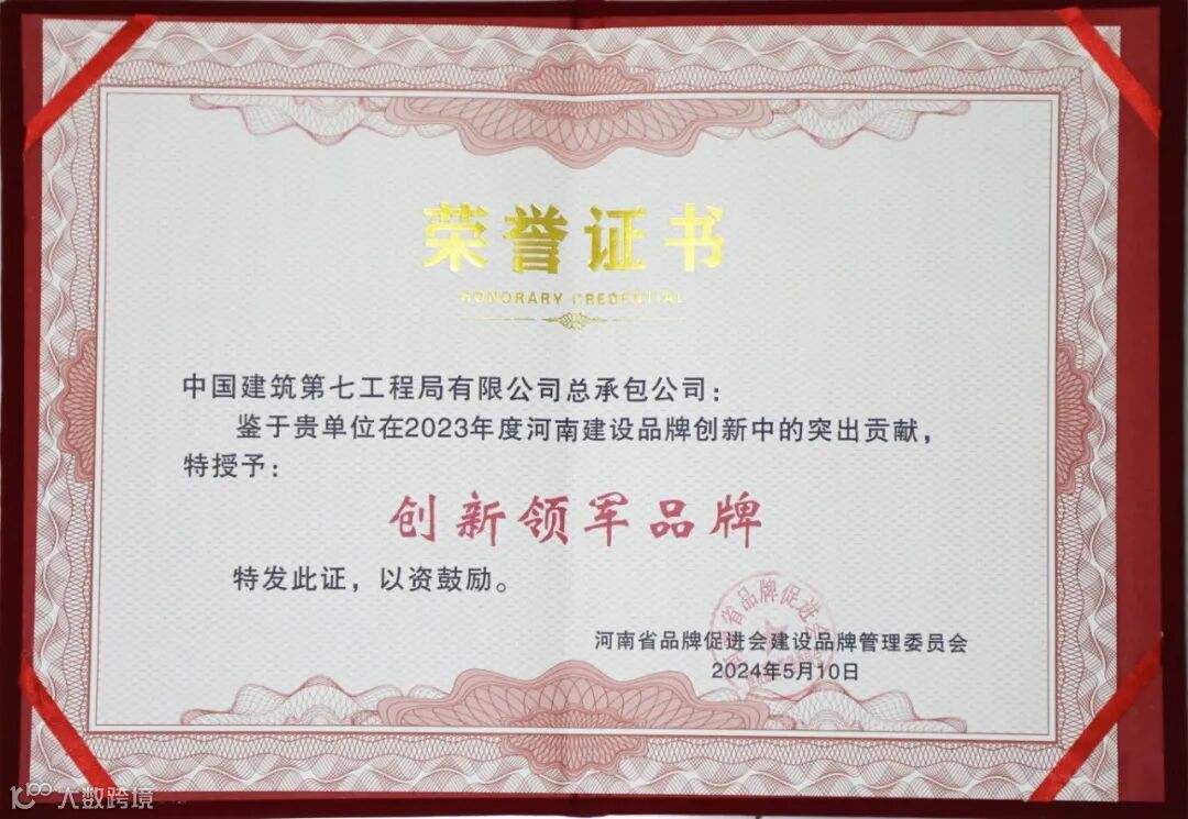 公司获评“河南省创新领军品牌”荣誉。