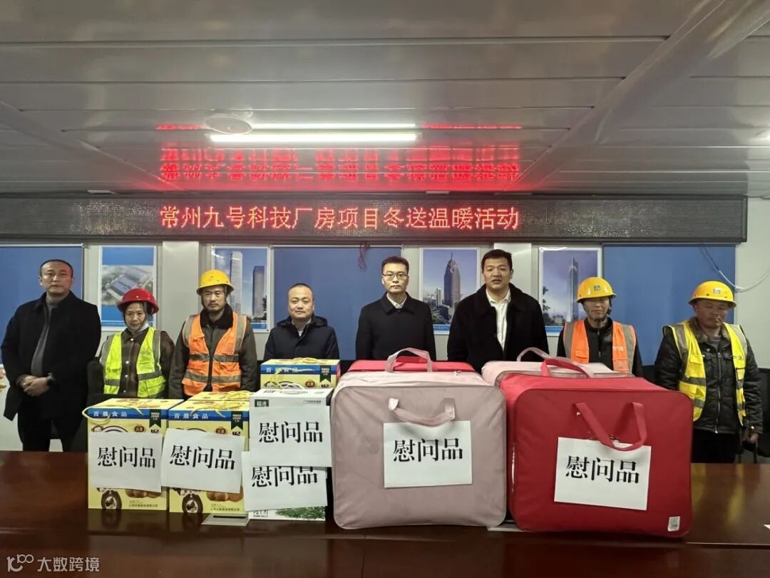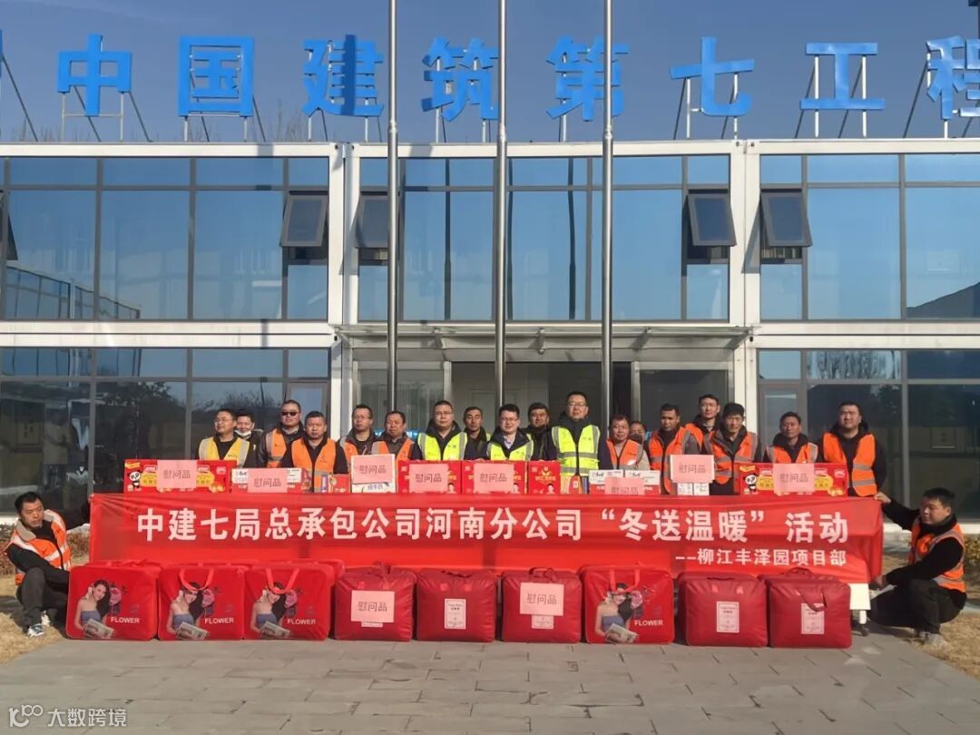 1月9日,新乡区域项目开展“冬送温暖”活动,为寒冬中坚守施工一线的工友们送上慰问品。
