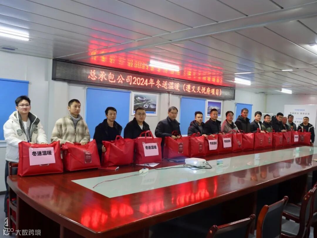 1月12日,遵义天悦府建设项目开展“冬送温暖”活动,为项目员工发放御寒物资。