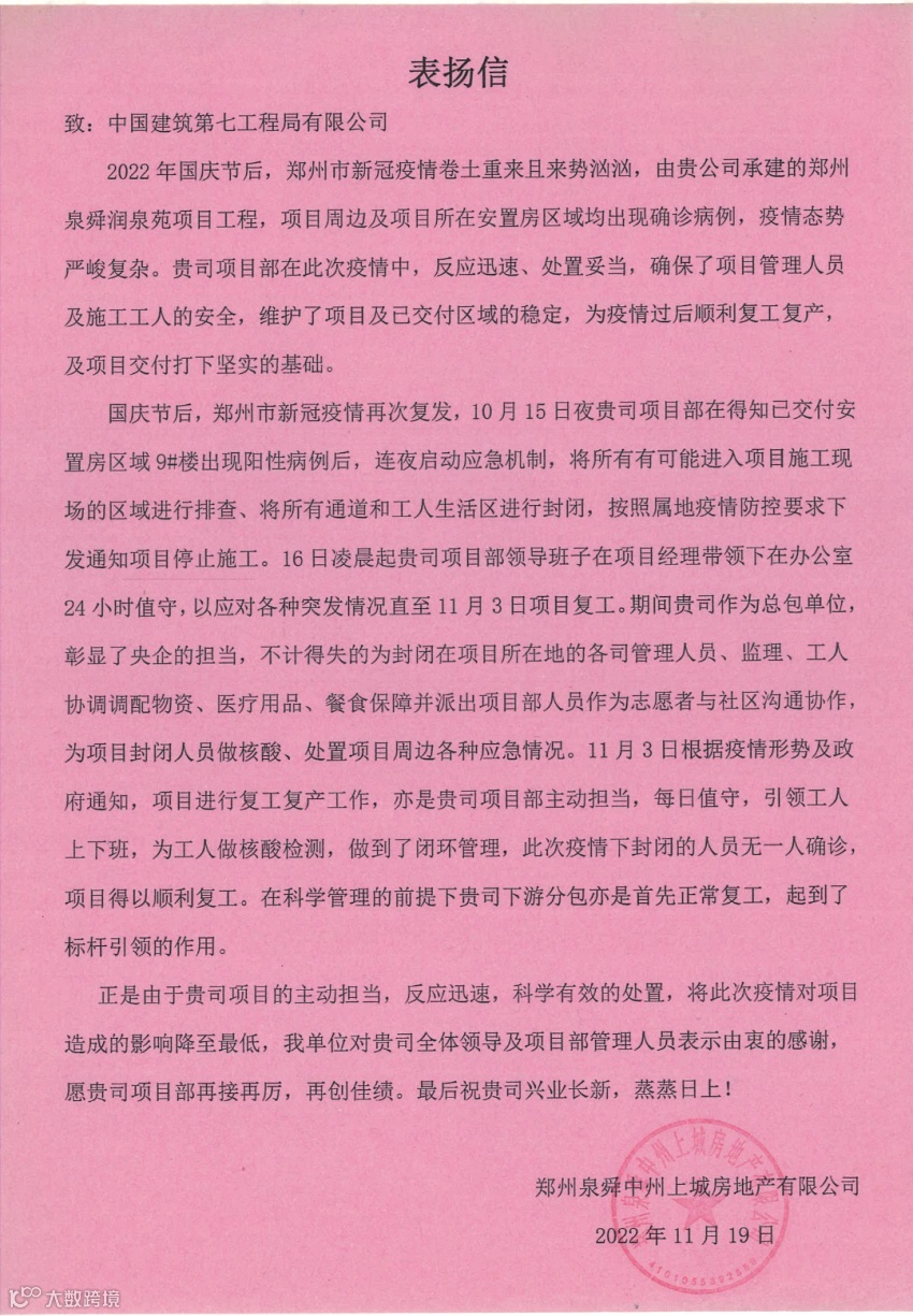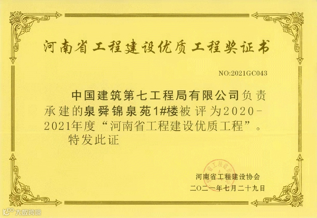 项目先后获评河南省工程建设优质工程奖、河南省建筑业新技术应用工程、河南省建筑业绿色施工示范工程等荣誉。通过工程创优彰显了企业实力,赢得业主和当地政府的口碑,以现场带动市场。