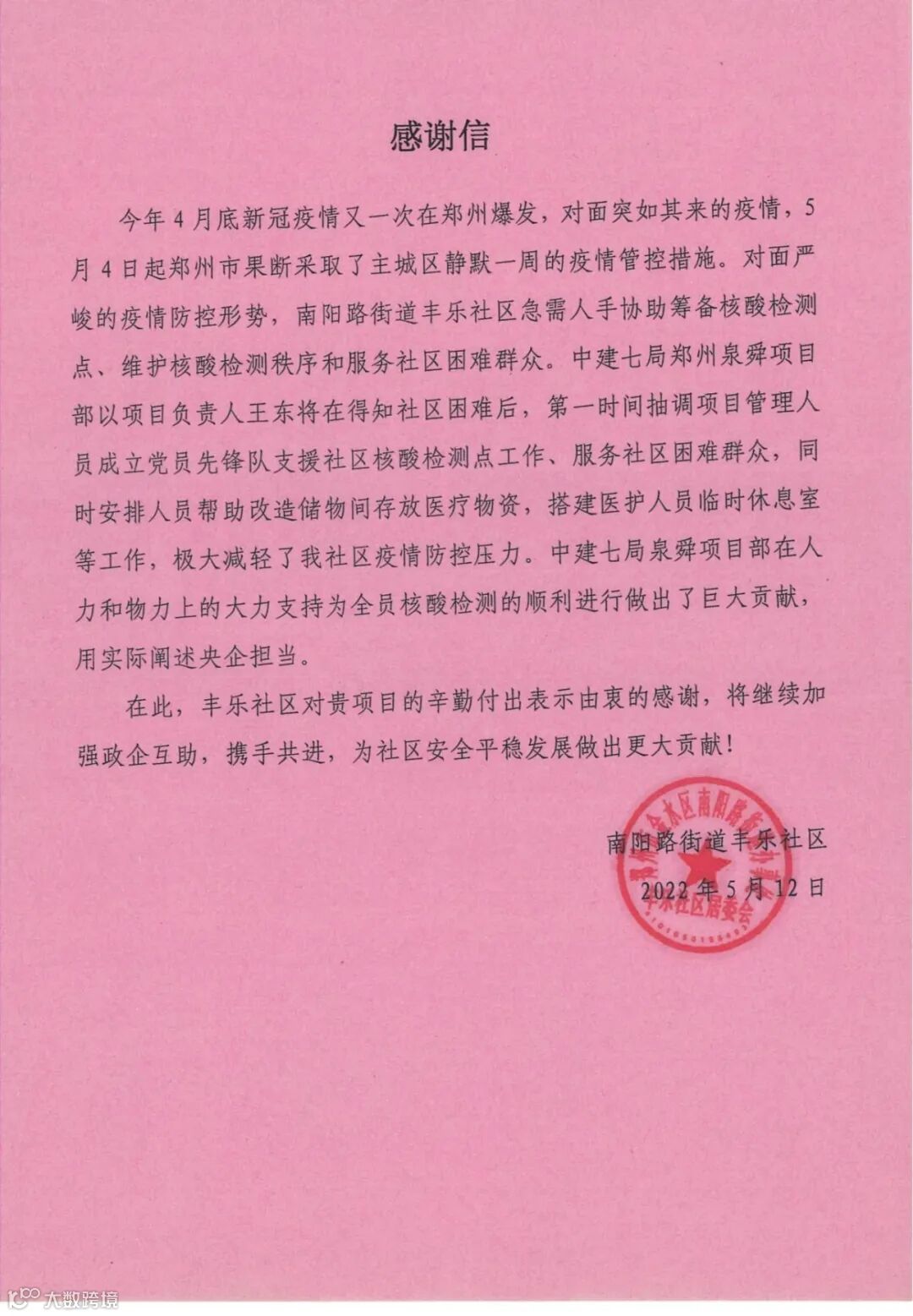积极开展党建共建,与所属社区党委联合举办各类大小活动20余次,获评驻地所在街道“区域化党建共建单位”荣誉称号,项目负责人王东将获评公司“红色先锋·优秀共产党员”。