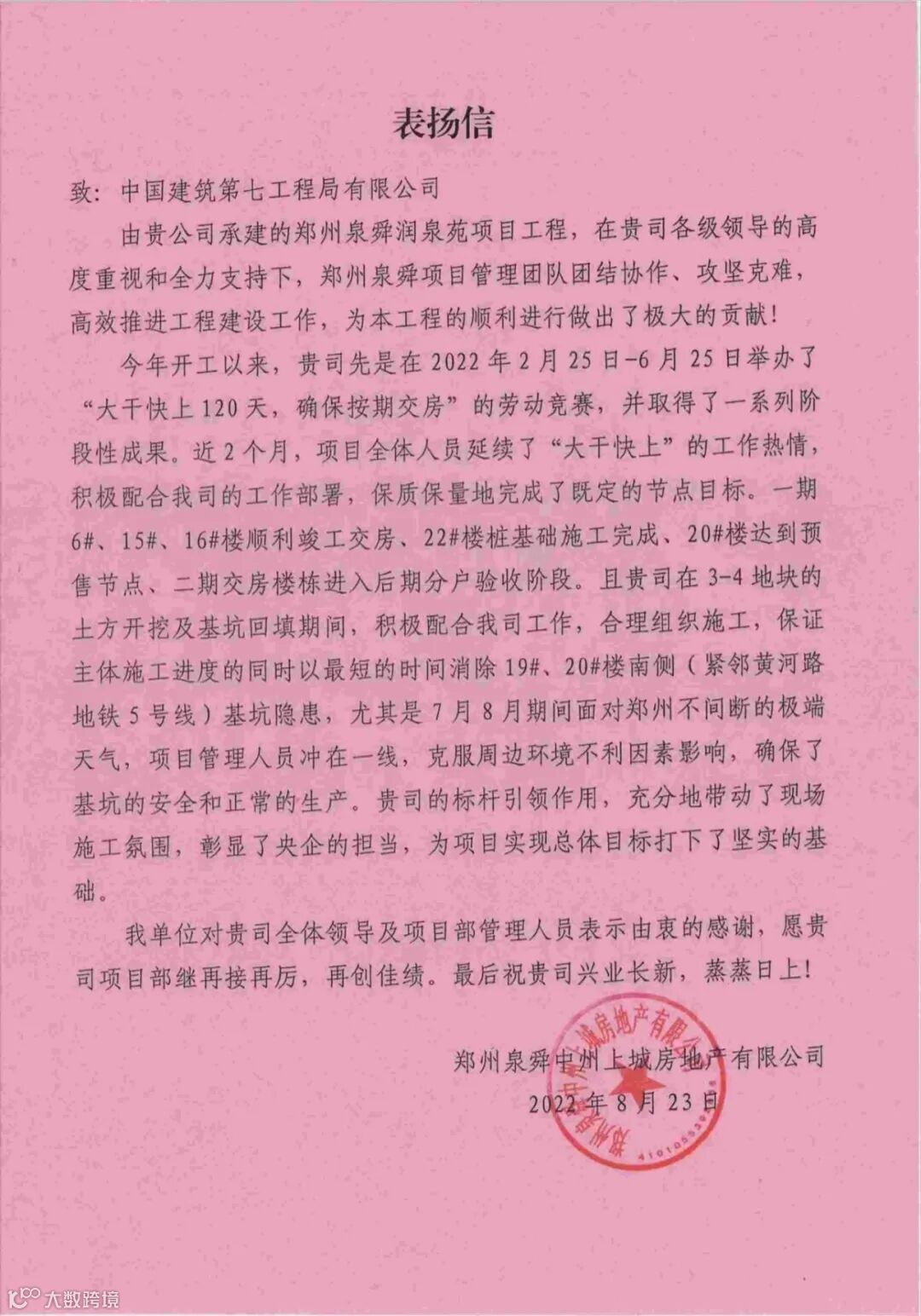各业务系统纵向管控到底,横向配合到位,做到一级管一级,层层压落实,练就了项目优质高效履约“真功夫”。目前项目已累计完成3300余户住宅品质交付,获属地社区及业主表扬信6封。