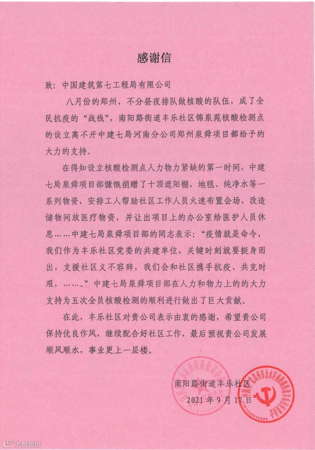 表扬信(部分)