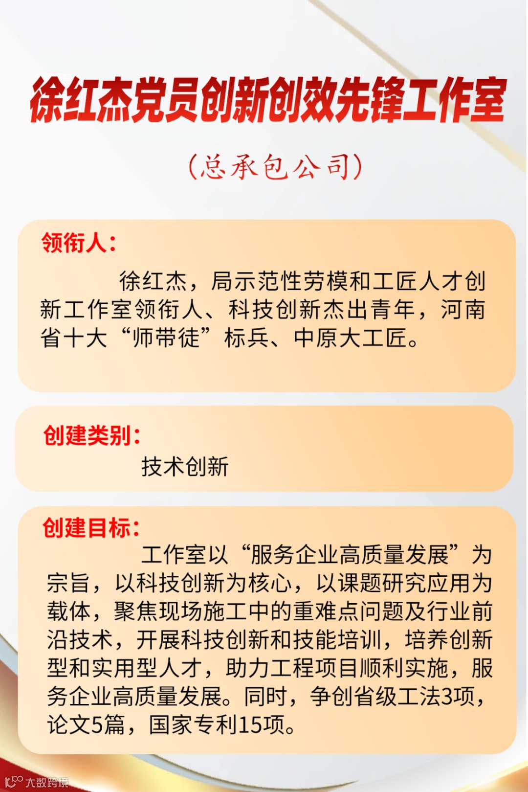 多年来,徐红杰不仅坚守施工一线、致力科研,也以至诚之心,培养了一批又一批“创新达人”,为企业源源不断地输送着创新人才。他带头创建党员创新创效先锋工作室,与青年员工签订“师徒协议”,从培养创新思维入手,到总结开发施工工法,将自己所学所悟倾囊相授,点亮每名青年员工的“创新梦”。这些徒弟中,多人获得国家级和省部级科研创新成果,走上了公司、项目技术质量关键岗位。