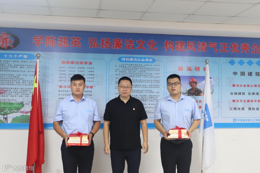 与会人员共同观看了廉洁微电影《一念指间》,宣读了《联创共建方案》,为“党员突击队”“陈超英突击队”授旗,为项目廉洁监督员颁发了聘书,向项目员工赠送了廉洁教育书籍,项目部与业主单位、劳务分包单位分别签订了《廉政合同》。