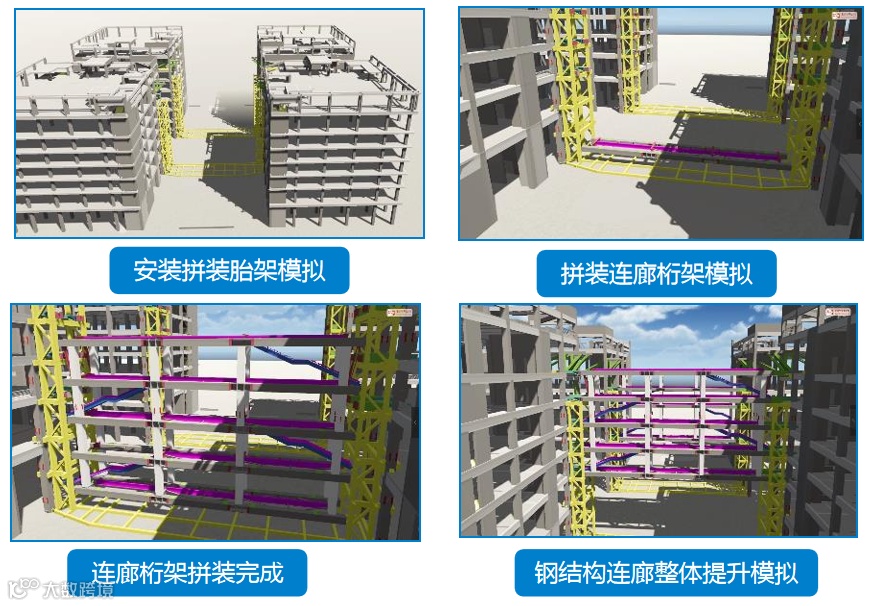 利用Revit、SAP2000等软件进行仿真模拟,模拟钢结构连廊提升过程中各结构的位置关系、施工工序、连接节点,并对提升前后的连廊结构和提升平台的变形情况进行可靠性验算。
