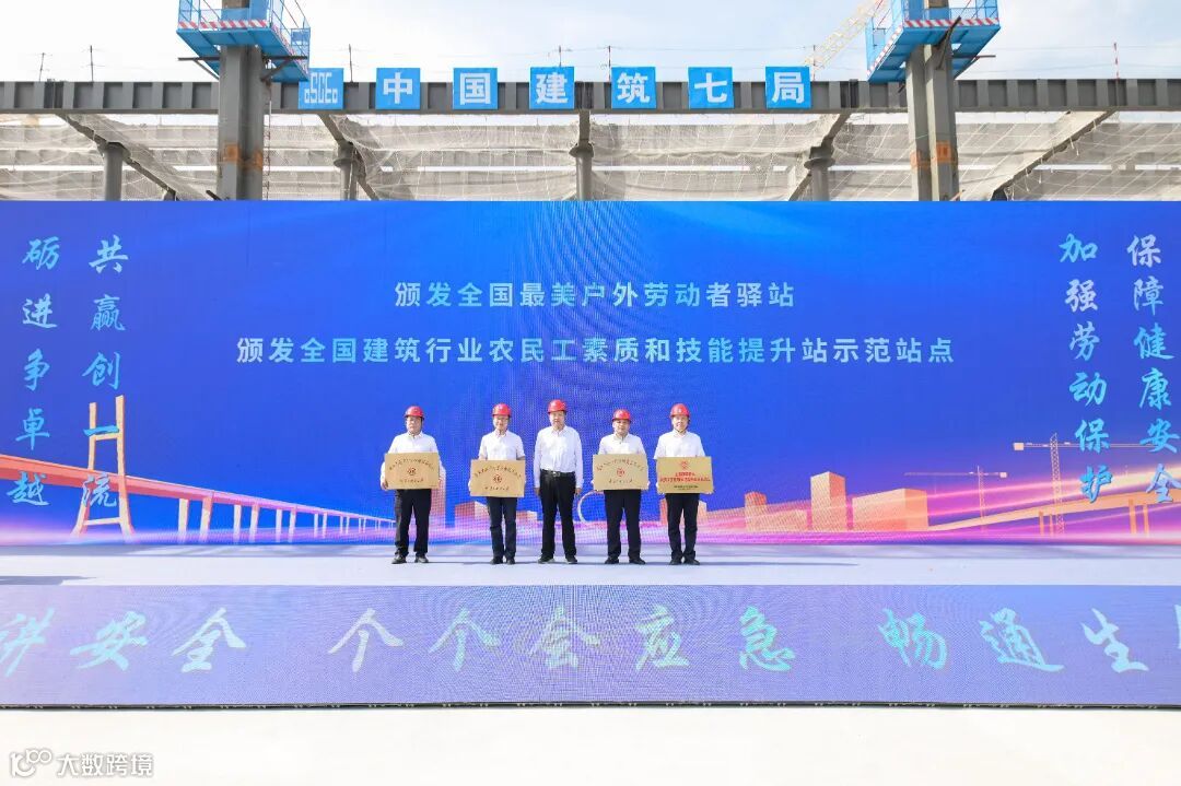 活动中,王旭涛为全国最美户外劳动者驿站、全国建筑行业农民工素质和技能提升站示范站点颁奖,刘利军为平安班组、行为安全之星颁奖。