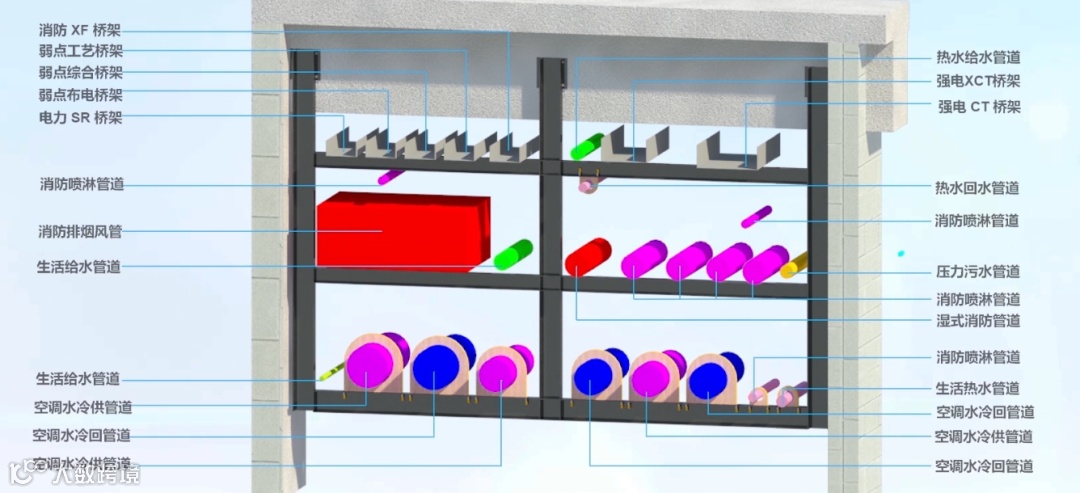 项目公共走廊位置空间狭小,仅有1.7米宽,其中斜看台下结构梁占据较大空间。项目团队利用BIM技术,在施工前期进行管线综合深化设计、净高分析、预留洞口深化,发现图纸错误557处,二次深化63处,制作净高图41张、预控孔洞施工图24张,提升了工程质量,降低了返工风险,提高了施工效率。